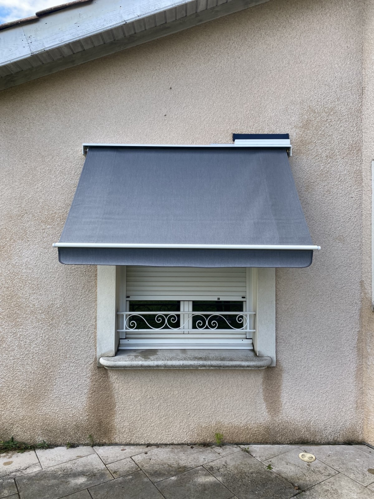 Le store choisi par le client est un modèle CAMANOE. Avec son coloris blanc brillant (RAL 9010), il s’intègre avec élégance à la façade de la maison, offrant une touche de modernité tout en restant discret. Nous avons opté pour une pose de face, ce qui garantit à la fois une solidité accrue et une meilleure adaptation à l’espace disponible.