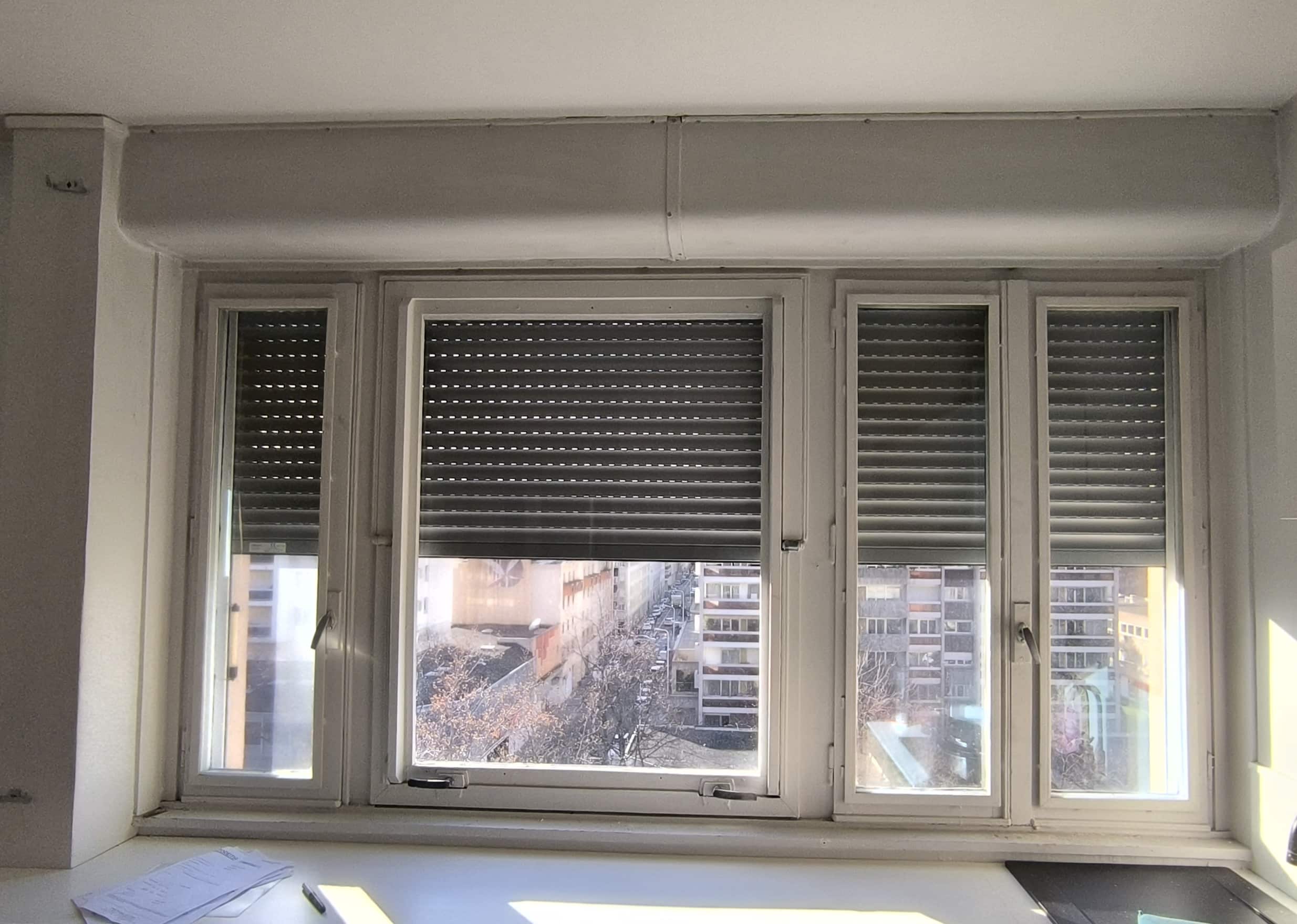 Le volet roulant posé est équipé de lames aluminium ADP39, reconnues pour leur résistance et leurs bonnes performances d’isolation. Le montage a été réalisé en coffre menuisé avec enroulement intérieur, une configuration qui permet une intégration discrète dans la fenêtre existante. Les coulisses 45×22 mm en Blanc RAL 9016 s’accordent avec le dormant, tandis que le tablier et la lame finale adoptent un coloris Gris Aluminium RAL 9006, créant un contraste élégant côté extérieur.